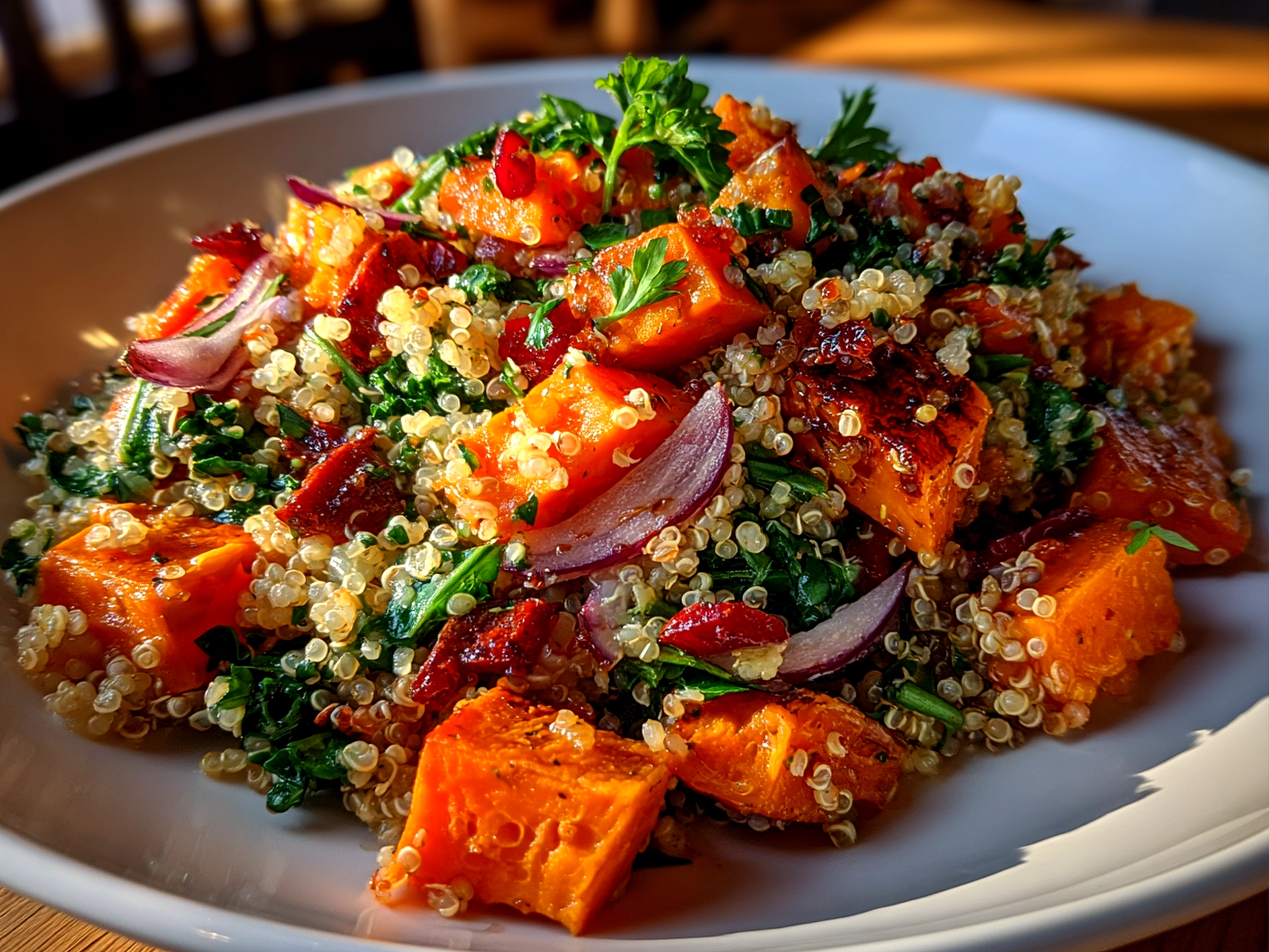 This Apple Sweet Potato Quinoa Salad is a vibrant, nutritious dish combining sweet roasted sweet potatoes, crisp apples, and fluffy quinoa for a wholesome and delicious meal.