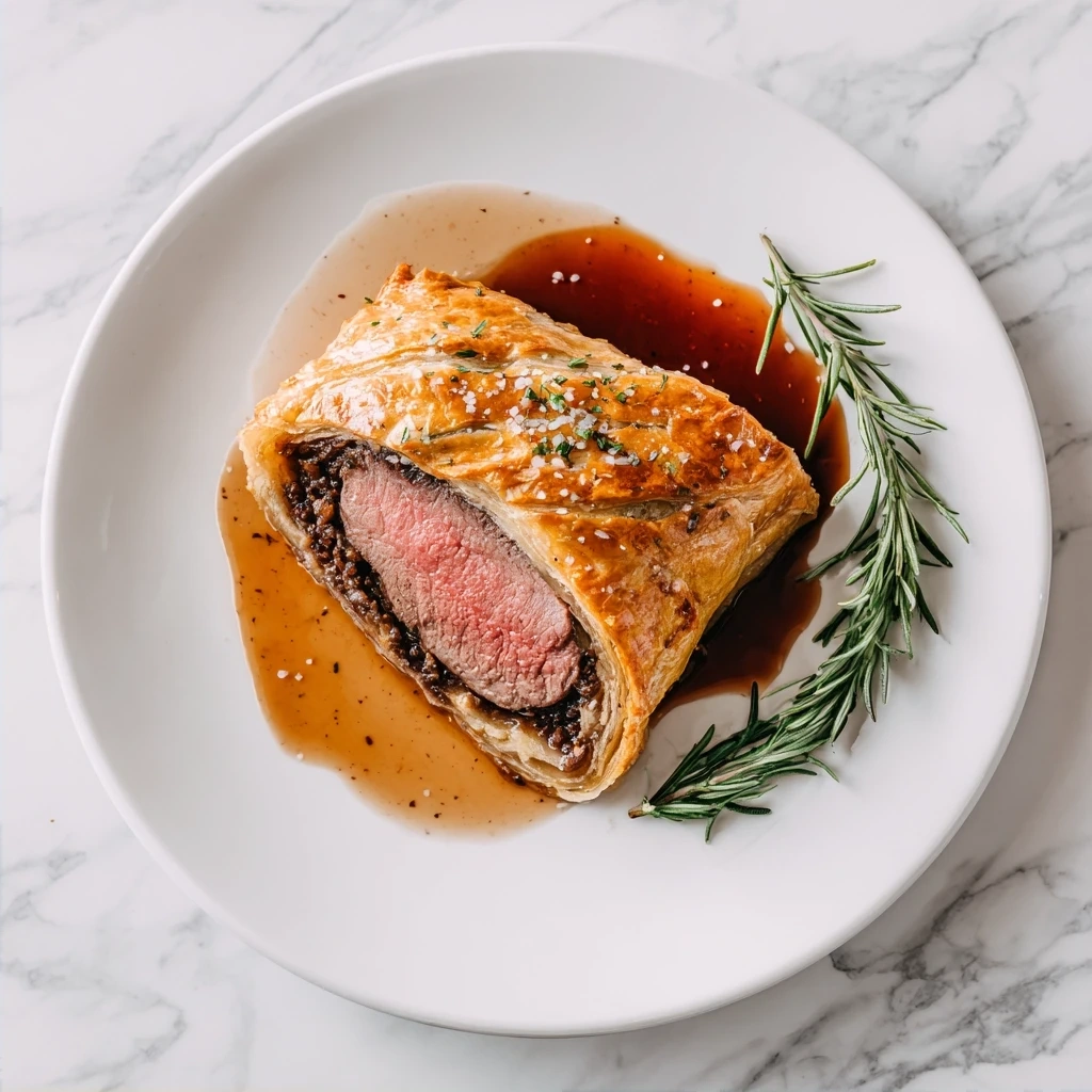 For a simpler presentation, just slice the Beef Wellington and arrange the slices on a platter. Garnish with fresh herbs like thyme or parsley.