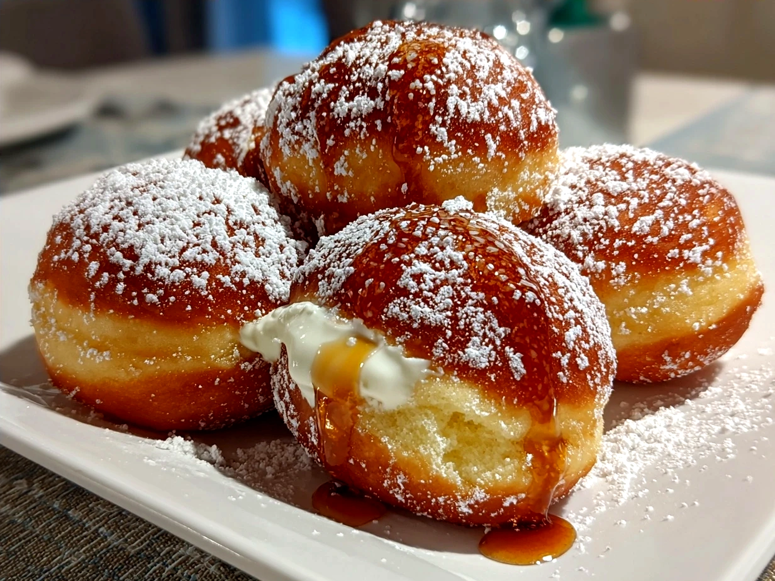 Bomboloni alla Crema are Italian fried doughnuts filled with a rich and creamy vanilla custard, perfect for a delightful dessert or snack.