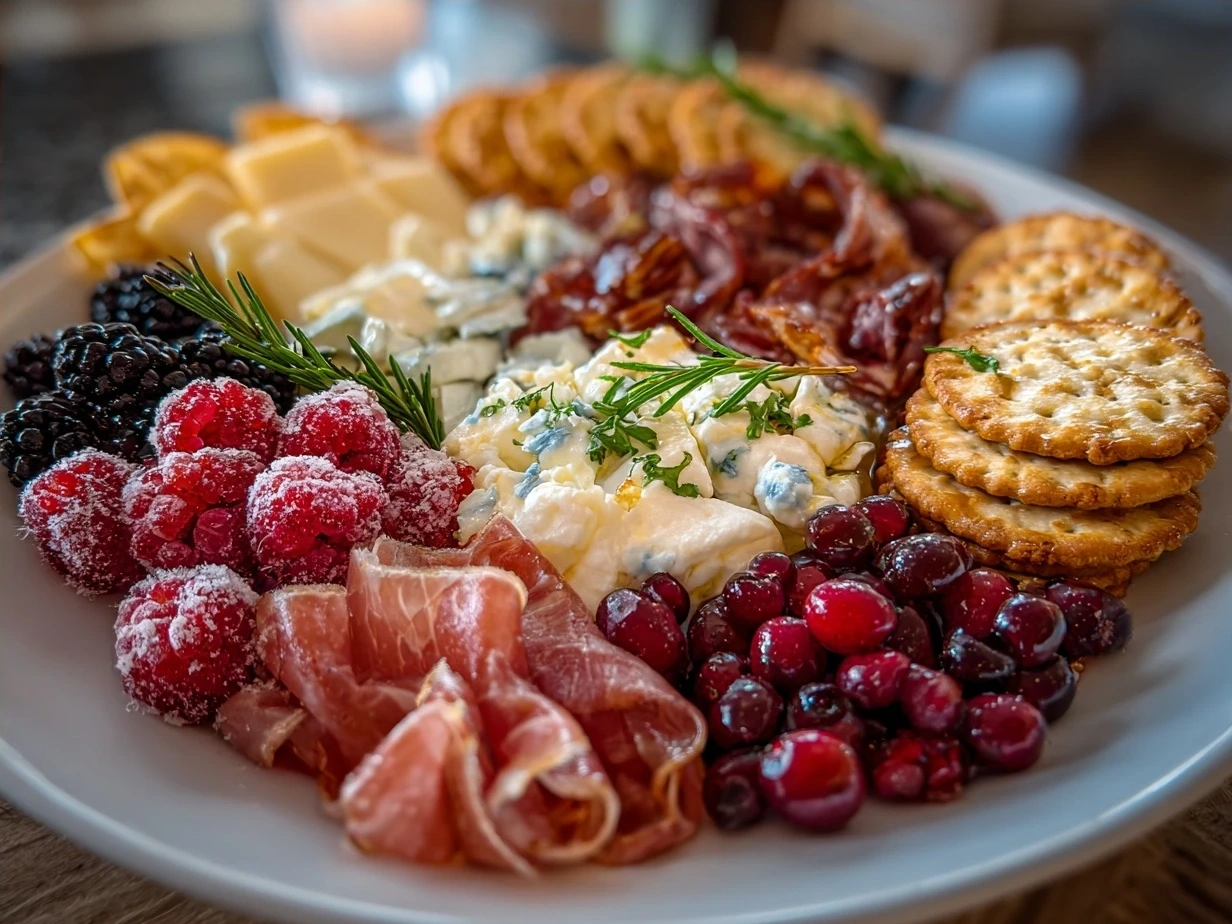 - Fresh Fruit (grapes, berries, apple slices): 1-2 cups total. My family gets extra comfort when I add some pomegranate seeds to the board.