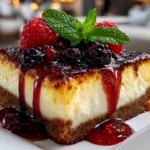 My kids especially love it when I toss a few fresh berries into the batter itself; it adds little pops of sweetness throughout the bake. That extra berry burst turns this into a full-on berry topping cheesecake experience that melts right into the soft, creamy body of the cheesecake.