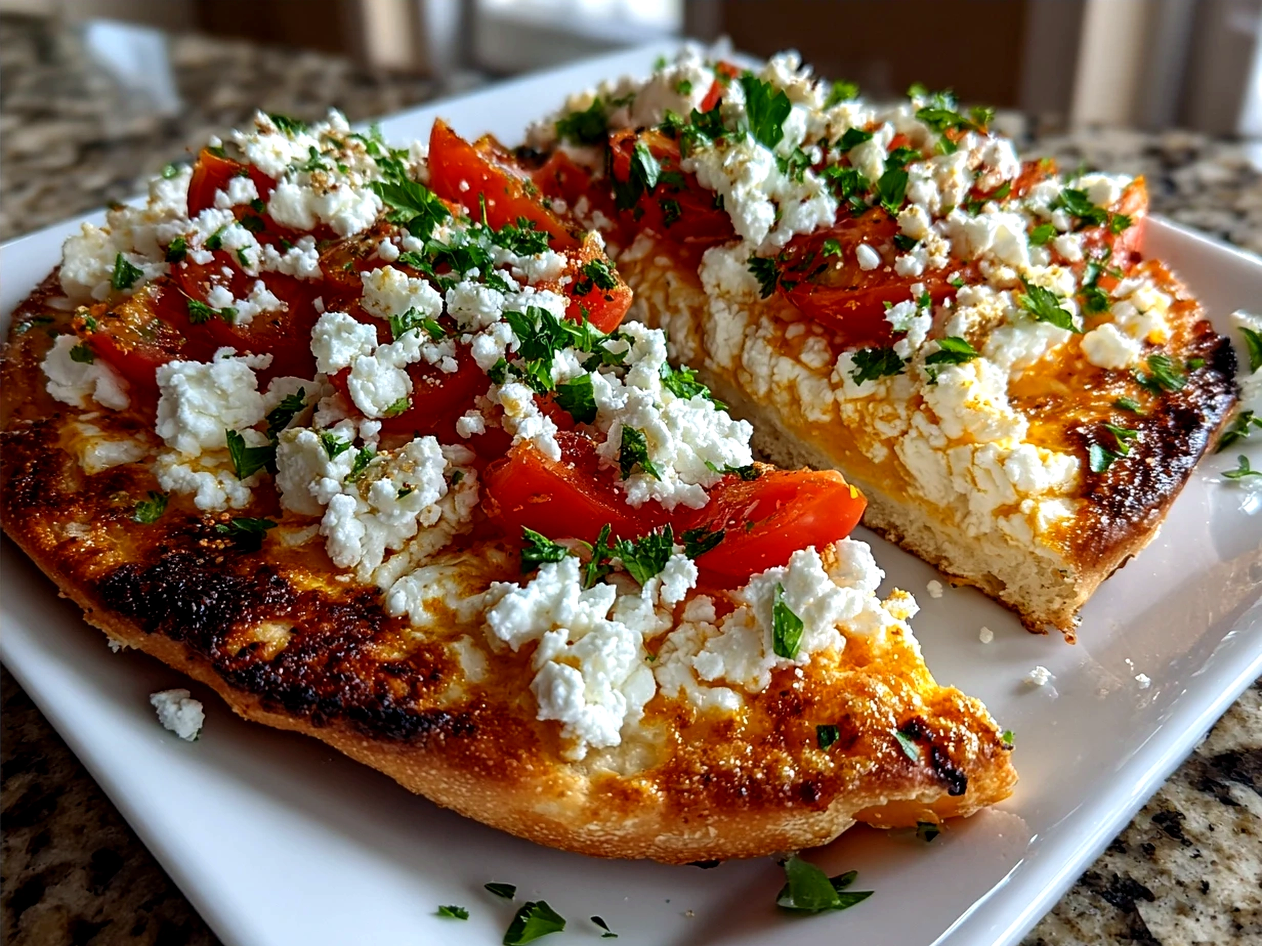 A delicious and healthy cottage cheese flatbread pizza that combines creamy cottage cheese with fresh veggies on a crispy flatbread base, perfect for a quick lunch or dinner.