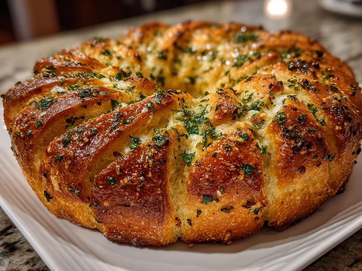 - Garnish with fresh parsley, if desired. Serve warm and watch your family devour this delightful Garlic Bread Wreath with Baked Brie!
