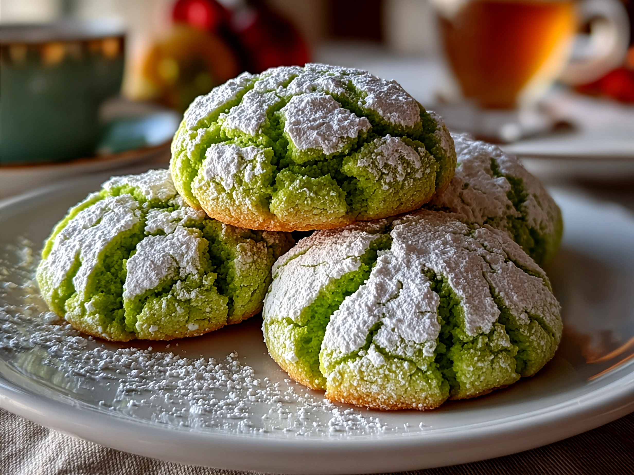 Our family savors this Grinch Crinkle Cookies fresh and slightly warm, pairing it with steaming mugs of cocoa for after-dinner cozy time. The kids adore dipping their green crinkle cookies into milk—it feels like a holiday ritual that wraps up their day.