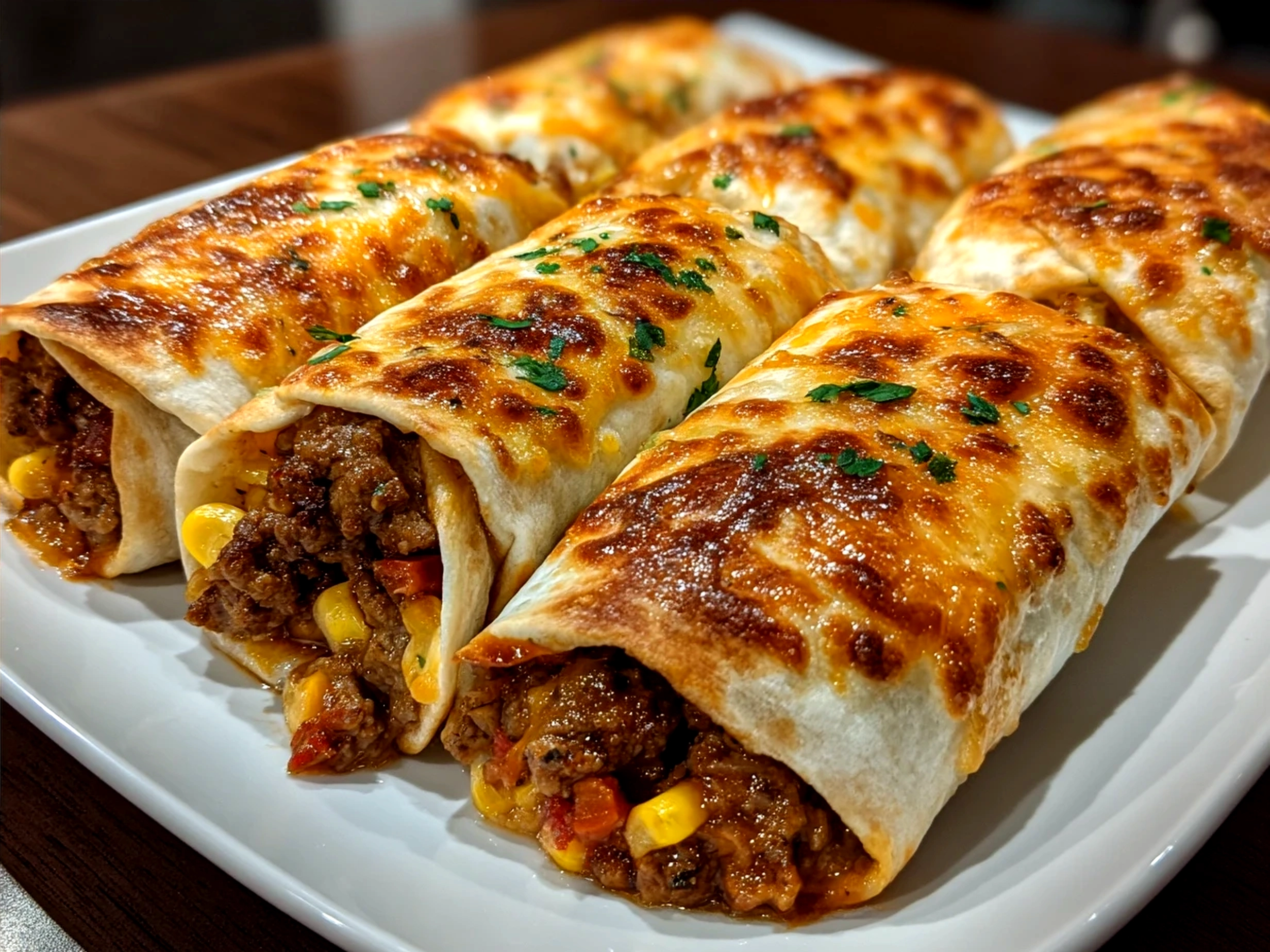 - Assemble roll ups: Scoop a generous spoonful of the beef mixture onto each tortilla, sprinkle with cheese, and roll tightly. Don’t worry if they seem a bit loose; they’ll hold up great when baked.