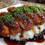 Japanese Katsu Bowls feature crispy breaded pork cutlets served over rice with a savory katsu sauce and fresh vegetables for a comforting and delicious meal.