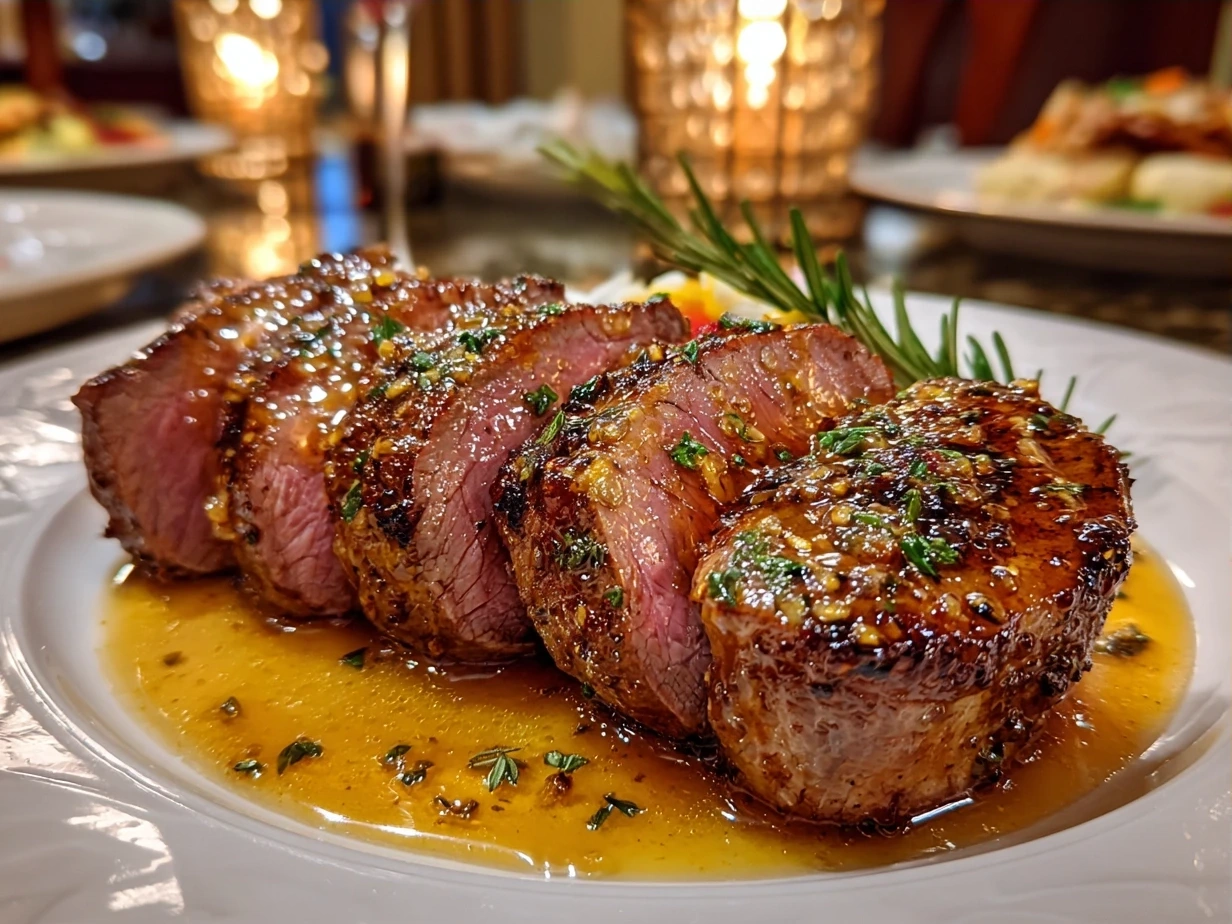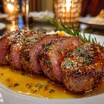 This Maple Dijon Glazed Beef Tenderloin features a tender, juicy cut of beef enhanced with a sweet and tangy glaze made from pure maple syrup and tangy Dijon mustard, perfect for an elegant dinner.