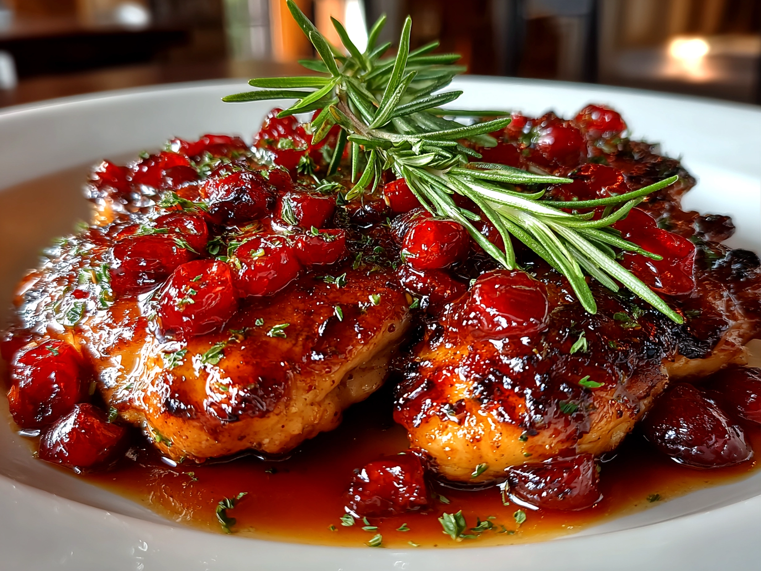 This One-Pan Cranberry Rosemary Chicken combines tender chicken breasts with fresh rosemary and tangy cranberries for a flavorful and easy weeknight dinner.