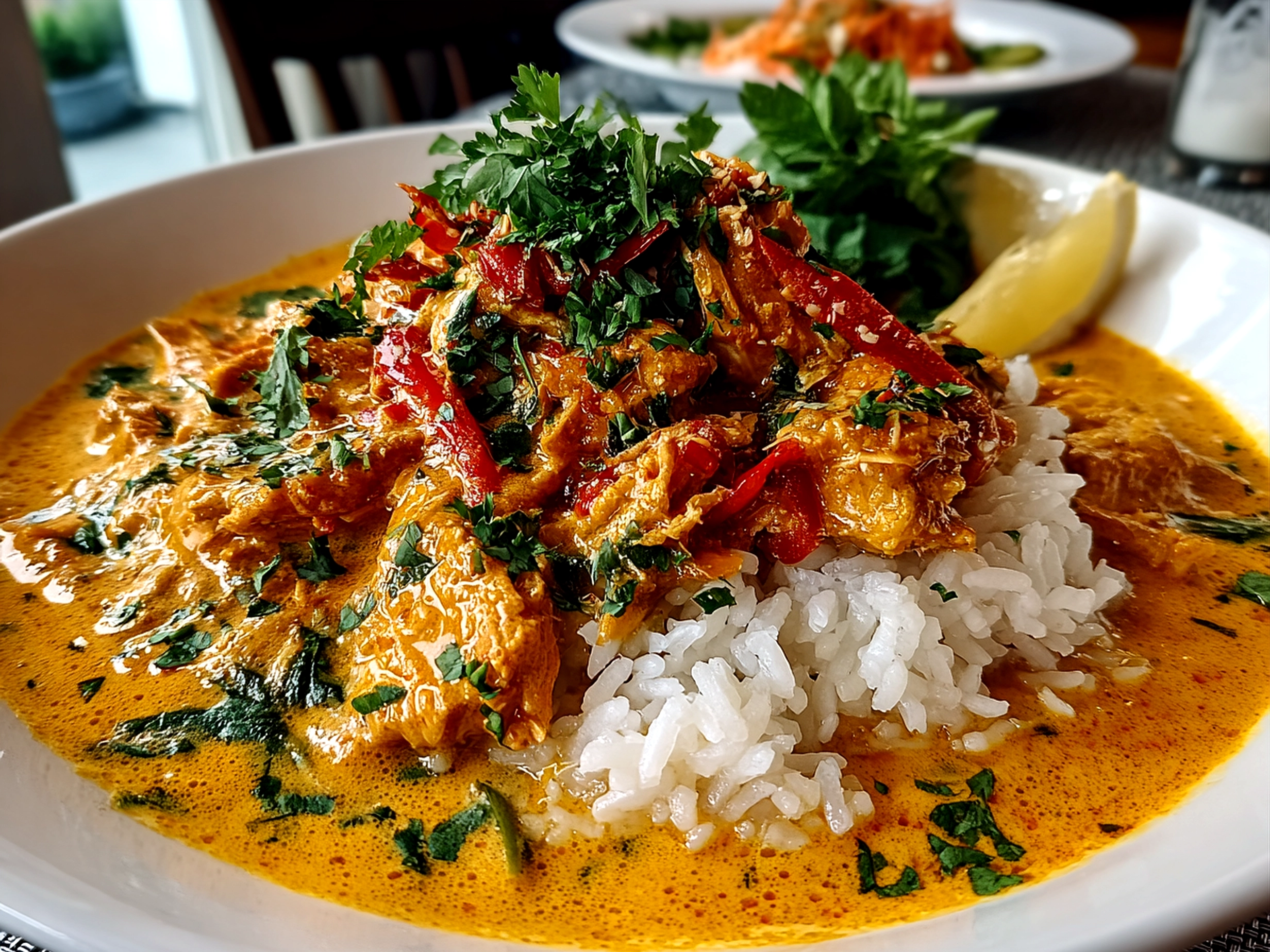 A rich and creamy Thai Peanut Curry combining savory peanut butter and aromatic spices for a deliciously satisfying meal.
